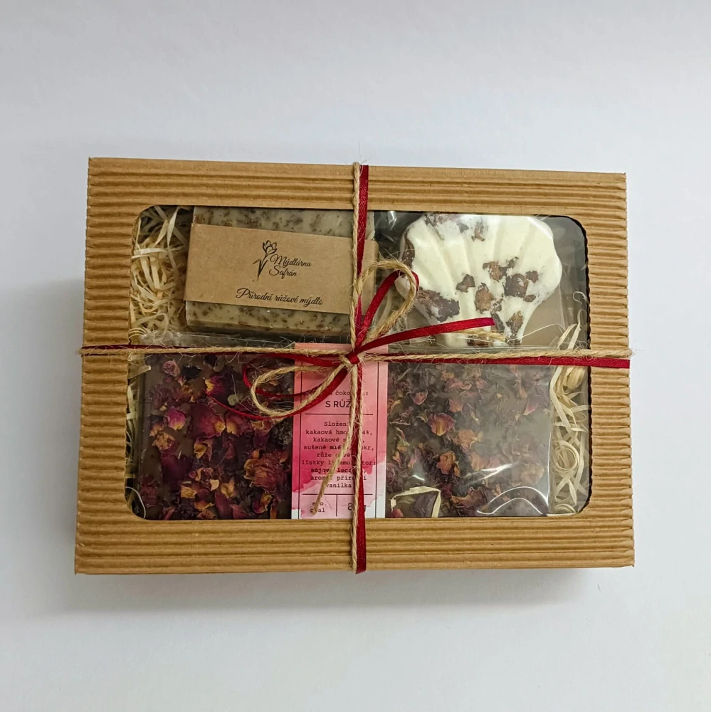 🎁 Dárková sada pro chvíle pohody – růže & čokoláda