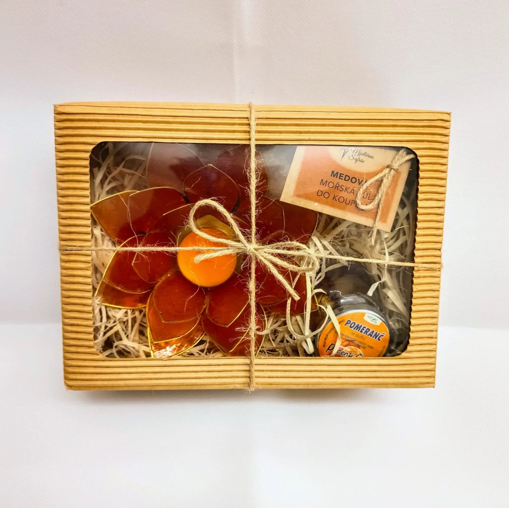 Dárkový balíček s lotosovým svícnem - oranžový