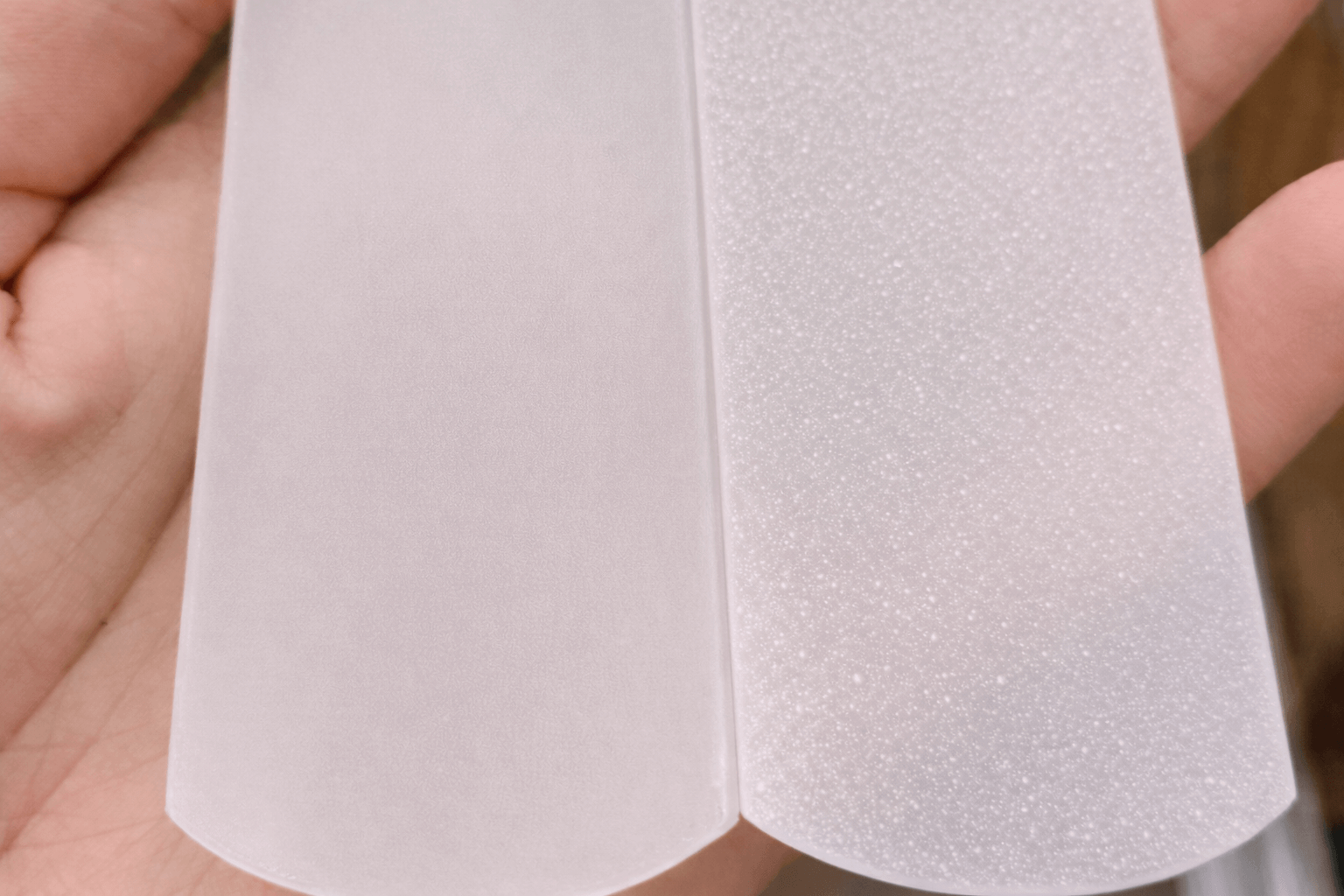 Skleněný pilník a pemza pracují s pokožkou odlišným způsobem. Rozdíl není v kvalitě, ale v míře kontroly a čitelnosti práce. Sklo: kontrola, čitelnost a rovnoměrnost Sklo má hladký, neporézní povrch, který umožňuje velmi rovnoměrný kontakt s pokožkou. Díky tomu sklo: