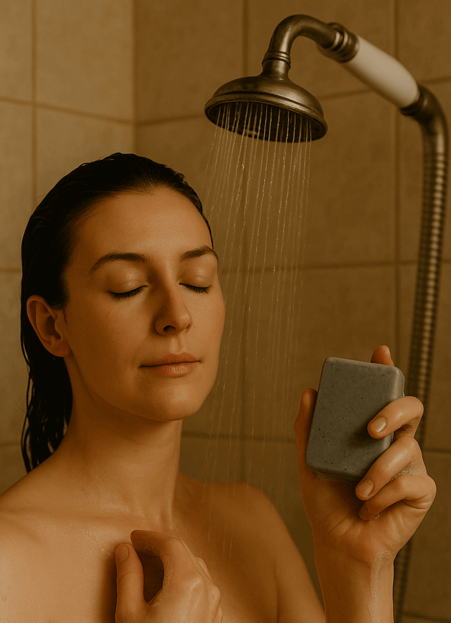 ![]() | 🚿 Mytí těla a regenerační rituálVe sprše napěňte mýdlo v dlaních nebo na jemné žínce a krouživými pohyby očistěte pokožku. Nechte pěnu krátce působit (20 - 30 vteřin) - minerály tak mají prostor projevit své účinky. 💼 Mýdlo, které pracuje v tichosti - čistí, zklidňuje a nechává pokožku dýchat. |